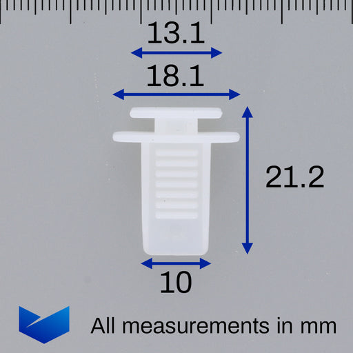 This two-part clip is used on some Lexus models including the IS. The clip is used to attach the windscreen cowl to the vehicle.