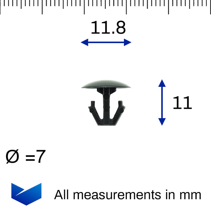 These round headed, plastic button clips push through the rubber seals at the front and rear of the bonnet to fix them in place. They are used on several Honda models.