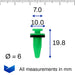 These distinctive green trim clips are used on the exterior pillars on many modern Mazda vehicles. The clips hold the lightweight plastic trim in position over the exterior pillars on cars such as the Mazda CX-5. Each clip has a small foam sealing washer already attached.