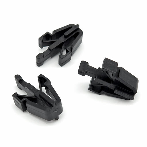These small black plastic trim clips are used on some Mitsubishi models to attach the plastic cowling that runs along the bottom of the windscreen.