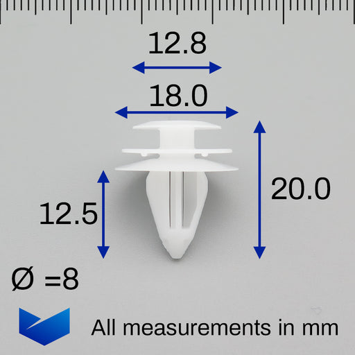 8mm Push Fit Plastic Trim Clip- Nissan 01553-09611