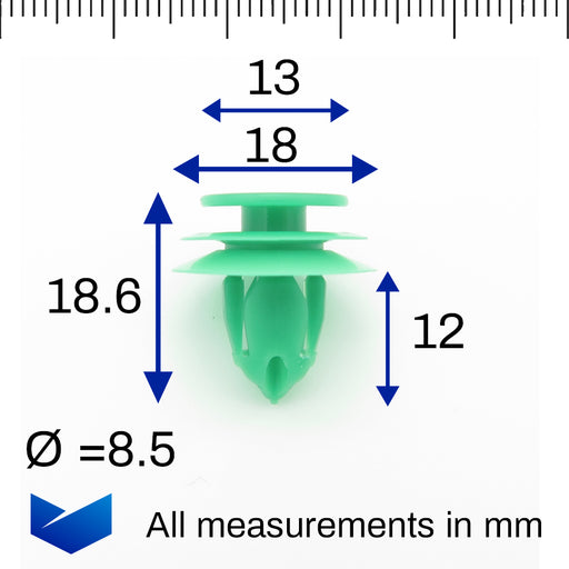 Used on Smart door cards, pillar trims, boot linings and headlinings, these green trim clips are common on most Smart car models.