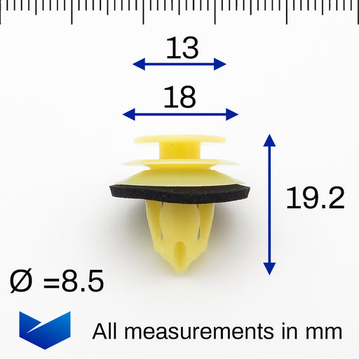 Each of these yellow plastic trim fasteners includes a foam sealing washer. These are high quality aftermarket parts identical in specification to ...