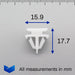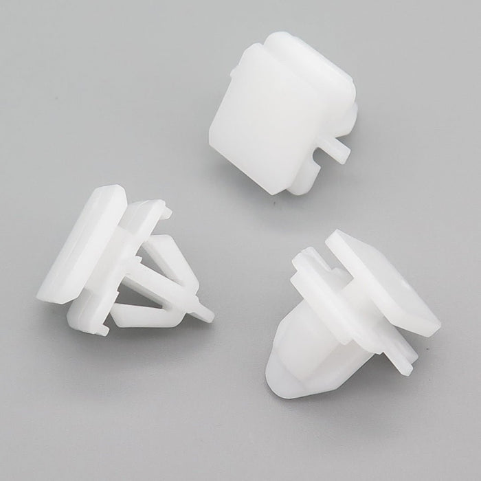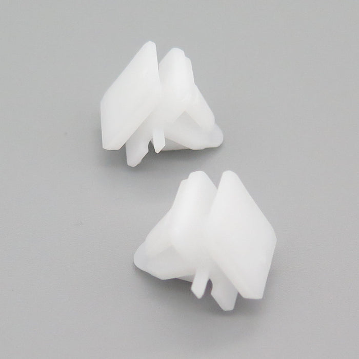 Diese weißen Clips werden beim F25 BMW X3 (2010-2017) verwendet. Dabei handelt es sich um die Kunststoffbefestigungen für die seitlichen Zierleisten, die an der Unterseite der Vorder- und Hintertüren entlang verlaufen. Hierbei handelt es sich um hochwertige Aftermarket-Befestigungselemente.