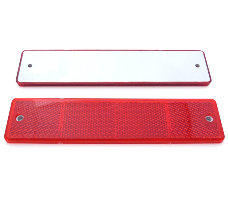 Diese rechteckigen schraubbaren Reflektoren eignen sich für Anhänger, Wohnwagen oder andere Fahrzeuge. Der Reflektor verfügt über Löcher, die eine sichere Montage an Fahrzeugen, Anhängern oder sogar Torpfosten und Gebäuden ermöglichen. Rote Reflektoren dienen zur Markierung der Rückseite eines Fahrzeugs oder Anhängers. Rote Reflektoren am Heck des Fahrzeugs sind eine TÜV-Vorschrift und ein wichtiges Sicherheitsmerkmal.