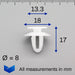 Diese weißen versteckten Zierclips werden bei vielen BMW-Fahrzeugen verwendet. Sie werden fast immer zum Anbringen der Kunststoffverkleidung an der Heckklappe oder der Kofferraumklappe verwendet. Die Verkleidung verfügt über Befestigungspositionen für diese Clips und die Befestigungselemente sind nach der Montage vollständig verborgen.