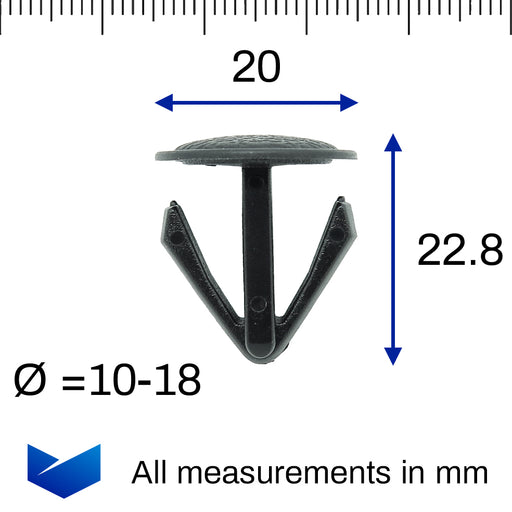 Vollständige Details anzeigenPush-Fit-Zierblenden-Clips – 3–5 mm Loch – 14 mm Kopf – Schwarz