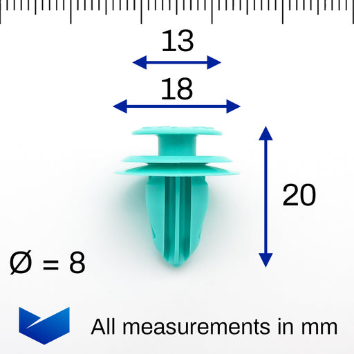 Diese Innenbefestigungen werden bei Nissan-Fahrzeugen zur Befestigung von Innenverkleidungen wie Kofferraumauskleidungen verwendet. Ein Anwendungsb...