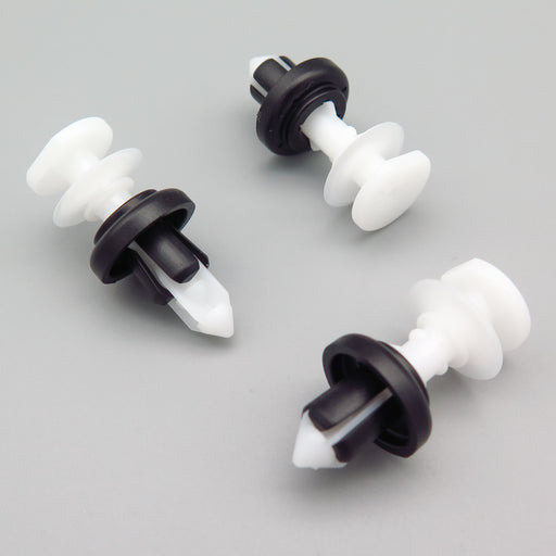 These white clips are normally used to attach exterior trim panels to the rear tailgate on some Honda cars. The clips are typically used on the str...