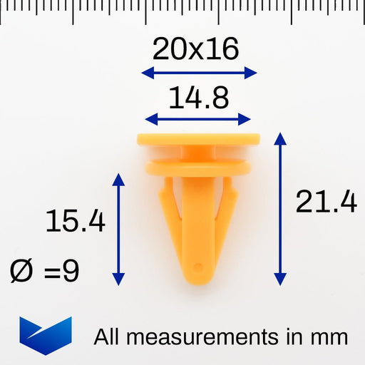 These yellow fasteners are used to attach plastic trim mouldings to some Kia vehicles. The are used for body trim such as sideskirts, door moulding...