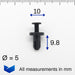 5mm Screw Fit Plastic Trim Clips, Mazda Bumper Fasteners EA0150037