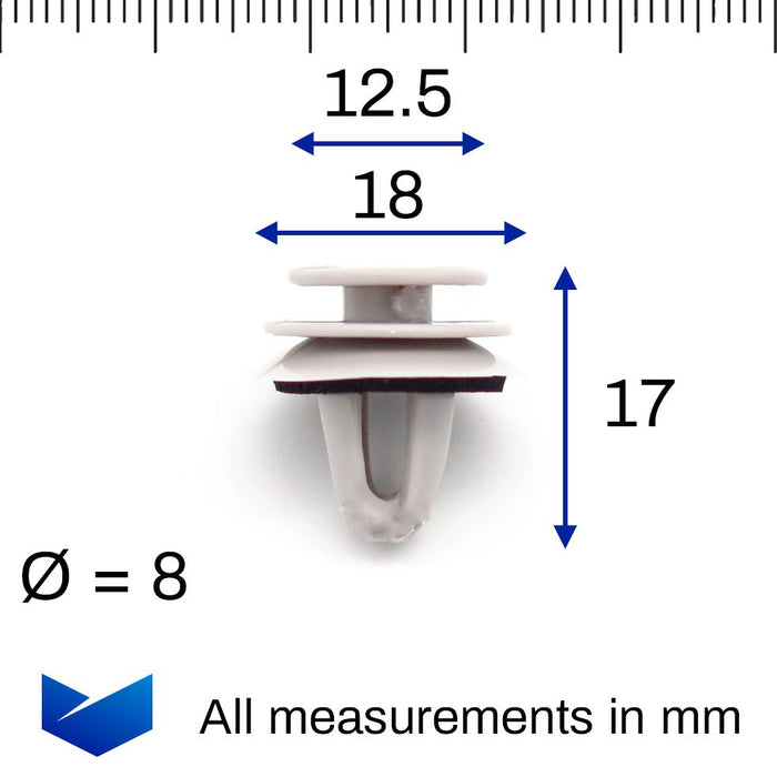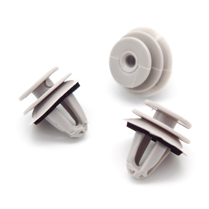 These grey plastic trim clips are used in on interior and exterior trim across the Mini range. Some models use them on exterior pillar covers, wheel arch flare trims, lamp covers and bumper trims. Each clip includes a foam sealing washer.