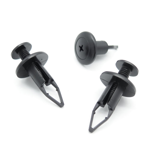 These screw fit black plastic rivets are used on some Jaguar models. Typical fitments include for bumpers, arch linings or interior trim panels.