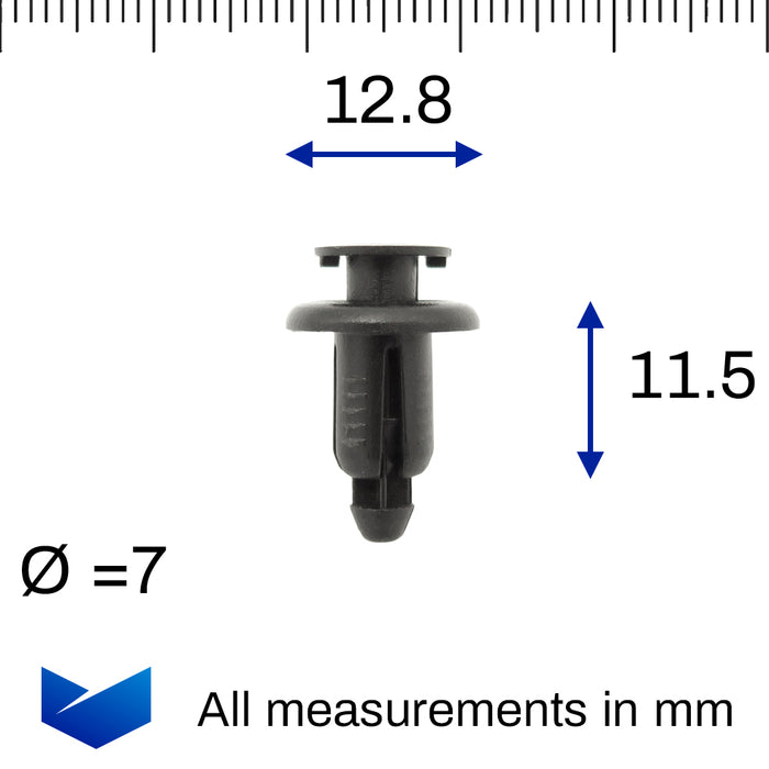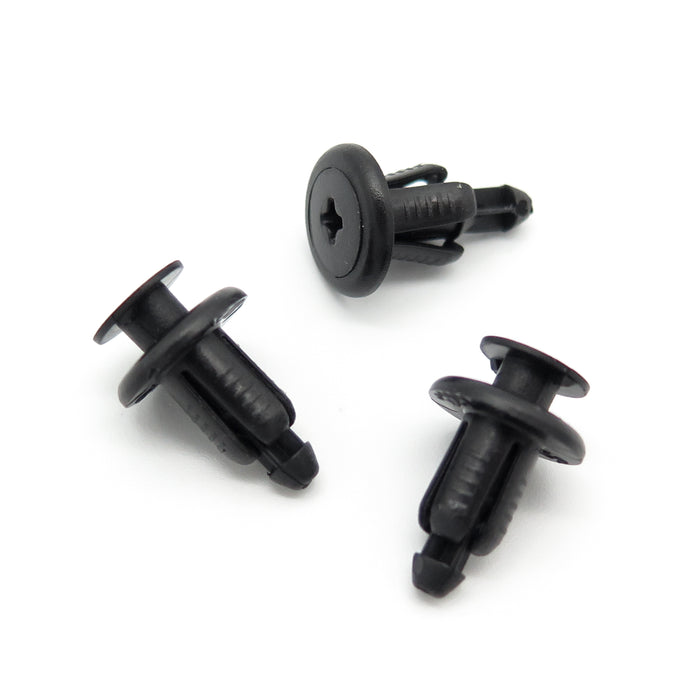 These small clips are ideal for motorcycle fairings or lightweight interior trims. The clips fit into a 7mm hole and when the centre pin is pushed in, it expands to grip tight. The clip is very simple to remove requiring just a 90 degree turn of the screw head. This causes the centre pin to pop and the clip can be released and reused.