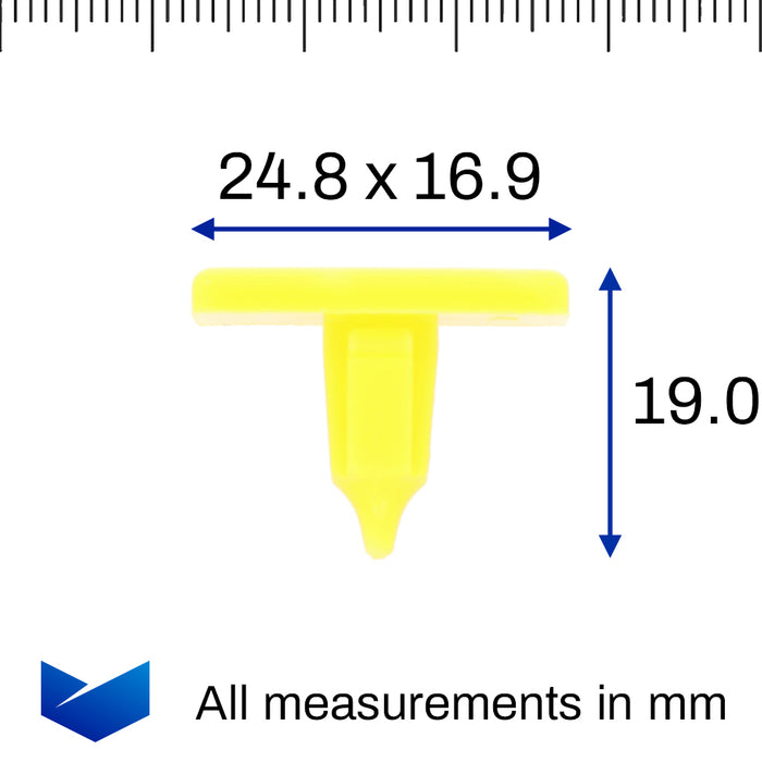 These distinctive rectangular yellow clips are used on the sill moulding or side skirts of some Kia models.