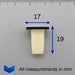 Standard lock nuts or screw grommets used for mounting parts or trim to metal bodywork. These clips push into a square 8.5mm hole in the bodywork. This allows secondary parts or trim to be securely mounted using self-tapping screws or bolts. These clips are used on several Mitsubishi cars to mount door cards, window regulators and tailgate linings.
