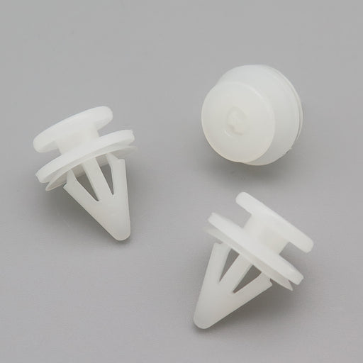These small white locator grommets fit into hole in the bodywork. A trim panel is then attached either using a locator on the trim, or a self-tappi...