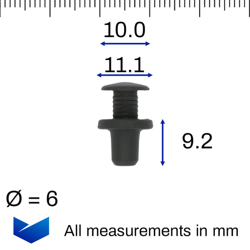 These sprung head push fit trim clips are used on all versions of the Tesla Model 3 to attach the door cards. The clips push in and expand when fit...