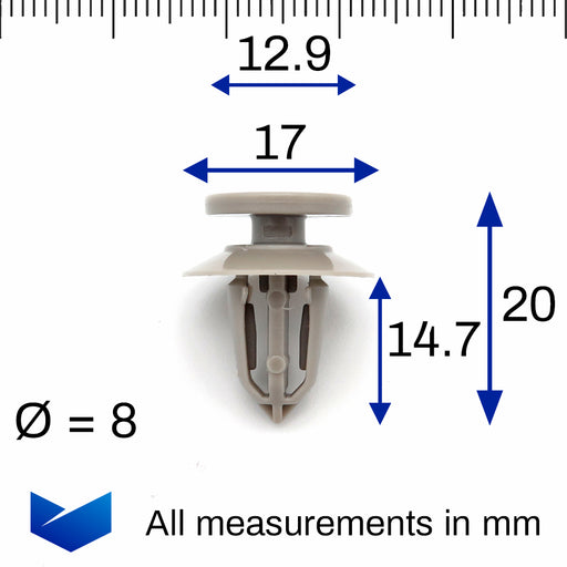 These grey plastic clips are normally used on exterior trim panels such as door mouldings, wheel arch flares and mirror trim pieces. Each clip incl...