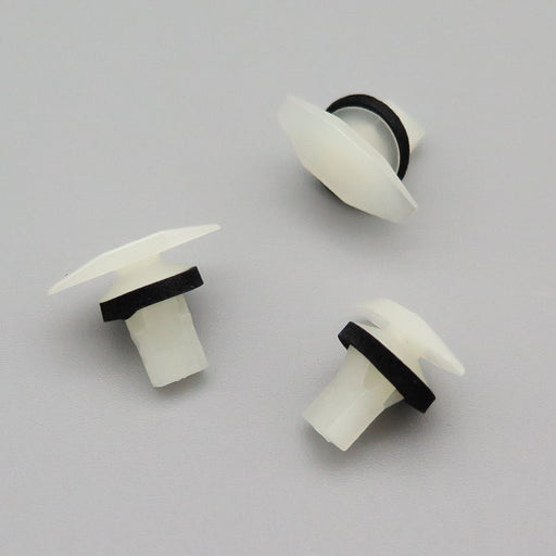 A push fit plastic clip that is used to secure the weatherstrip in position on some older Audi vehicles.