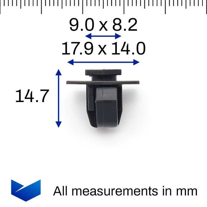 These black trim clisp are used on the exterior trims of some Kia models such as the Niro. The clips are used to secure the side moulding strips onto the bodywork.