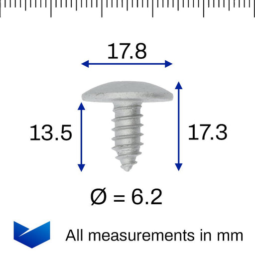 Aluminium rivet used to fasten Mercedes bumper trim, including front and rear bumper covers, the front grille or slam panel, and the tow eye cover....