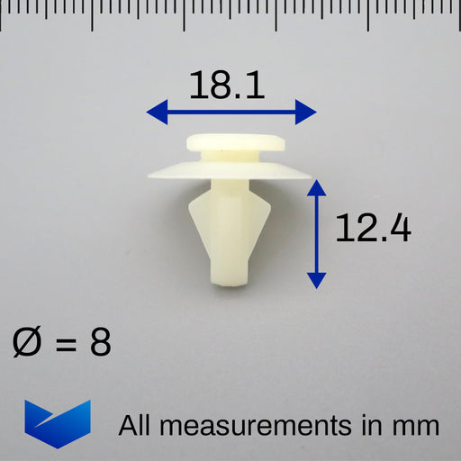 Interior trim clips used on several VAG group vehicles to attach parts such as tailgate liners, pillar covers and boot linings.