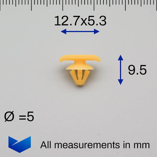 Il s'agit d'une pièce universelle très courante sur une large gamme de modèles. Le clip s'insère dans un trou de 5 mm dans la carrosserie, tandis q...