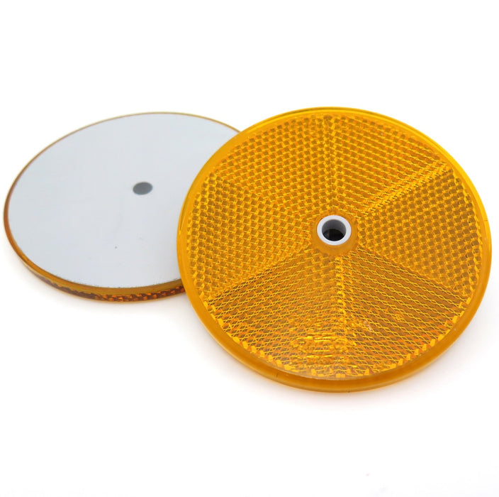 These circular reflectors have a hole in the centre for mounting with a screw and are suitable for trailers, caravans or other vehicles. Amber / Orange reflectors are used on the sides of vehicles and trailers. On long vehicles, the gap between side reflectors must be no greater than 3 metres.