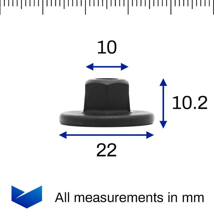 Commonly used to secure plastic panels and trim such as windscreen cowls, arch linings and underbody shields.
